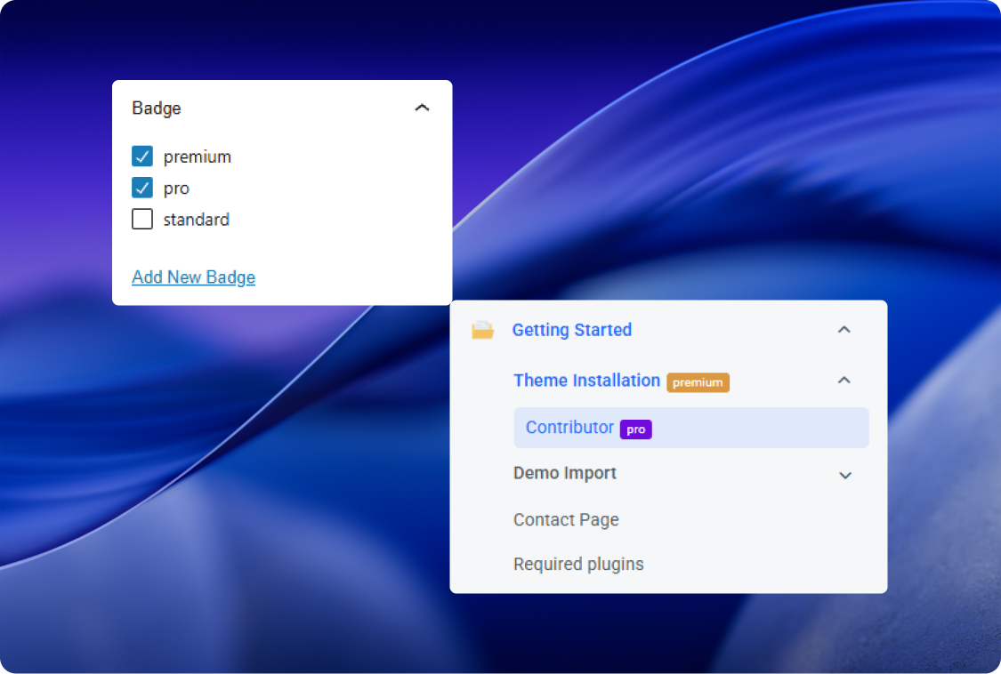 Use custom badges to clearly categorize or emphasize content in your documents. Create a new badge, apply it on the post page, and it will immediately display on the live view, providing instant visual cues for users.