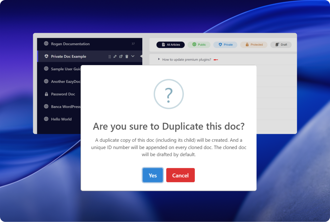 You can easily duplicate an entire group of documentation at once, or select and copy multiple individual documents simultaneously. This powerful feature saves significant time when replicating existing content or creating backups.