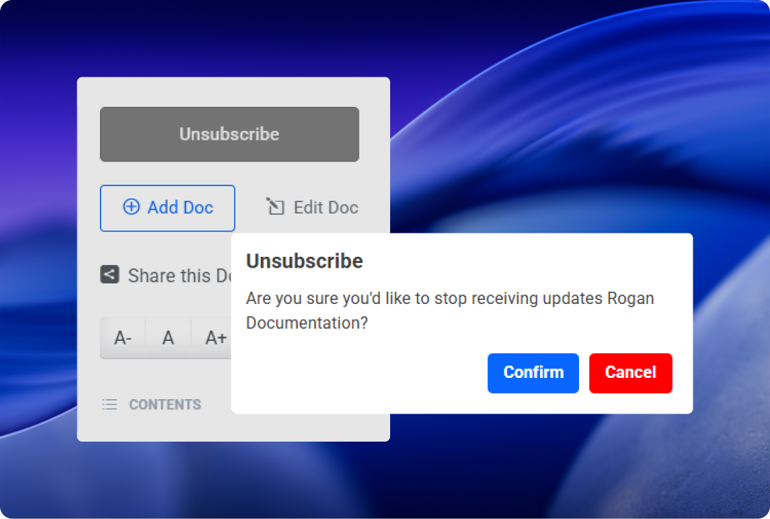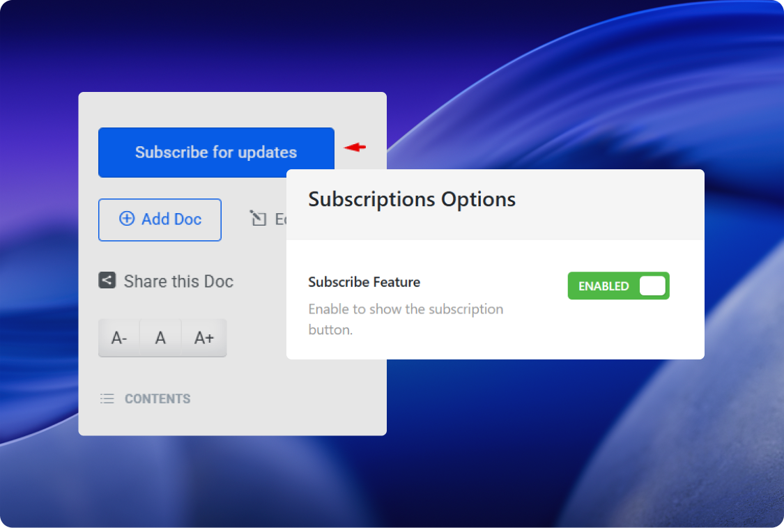 Enable seamless document updates with the Smart Subscription Control feature. Activate the switch to display a subscription button, allowing users to subscribe and create new docs effortlessly, ensuring continuous engagement and easy content management.
